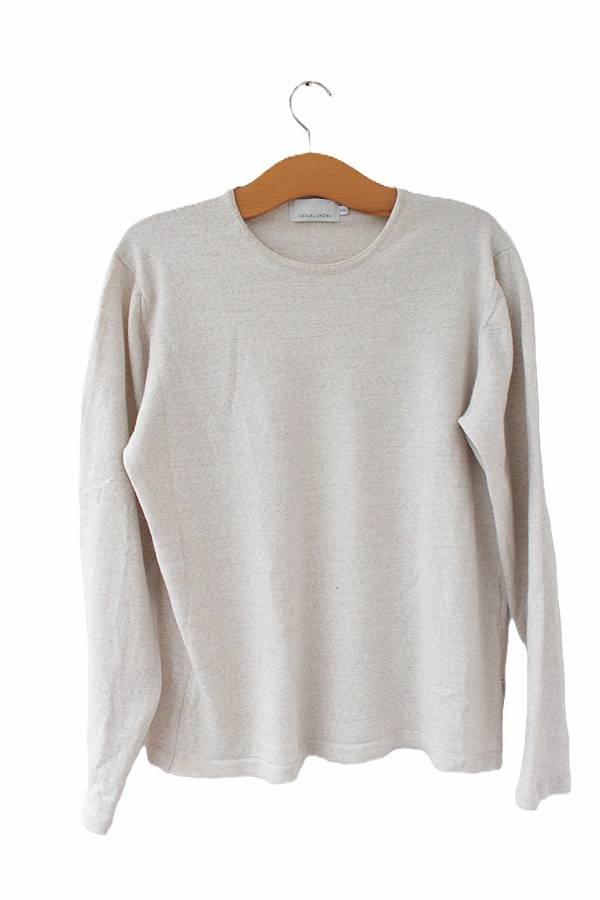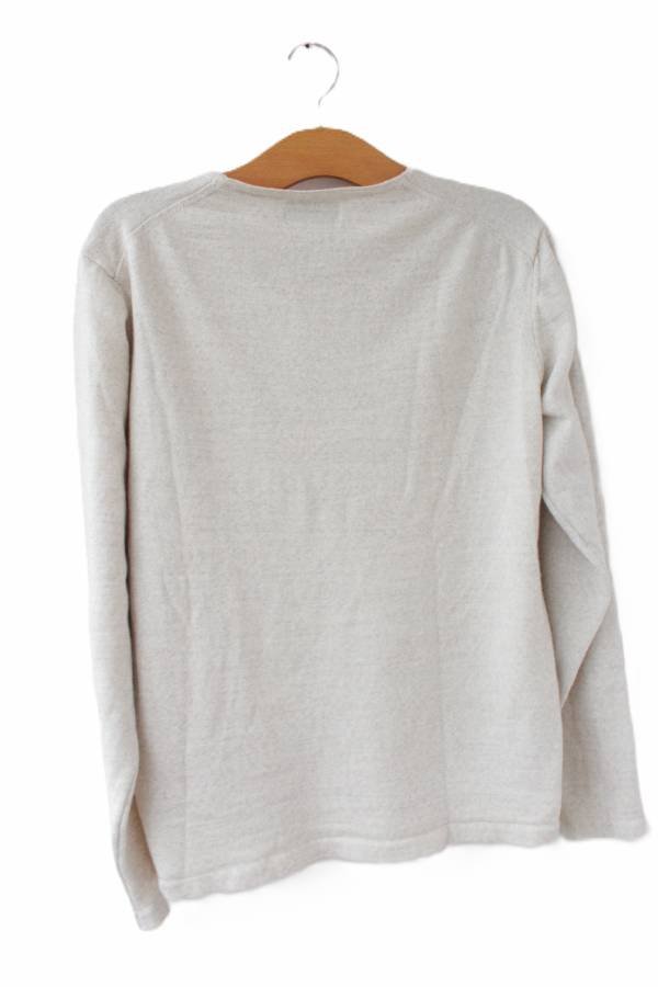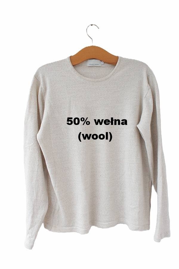 Przedstawiam Państwu wysokiej jakości sweter vintage z wełny i syntetycznego włókna. Kolor to ładny, chłodny jasny beż. Klasyczny fason, więc może być damski Iub męski.