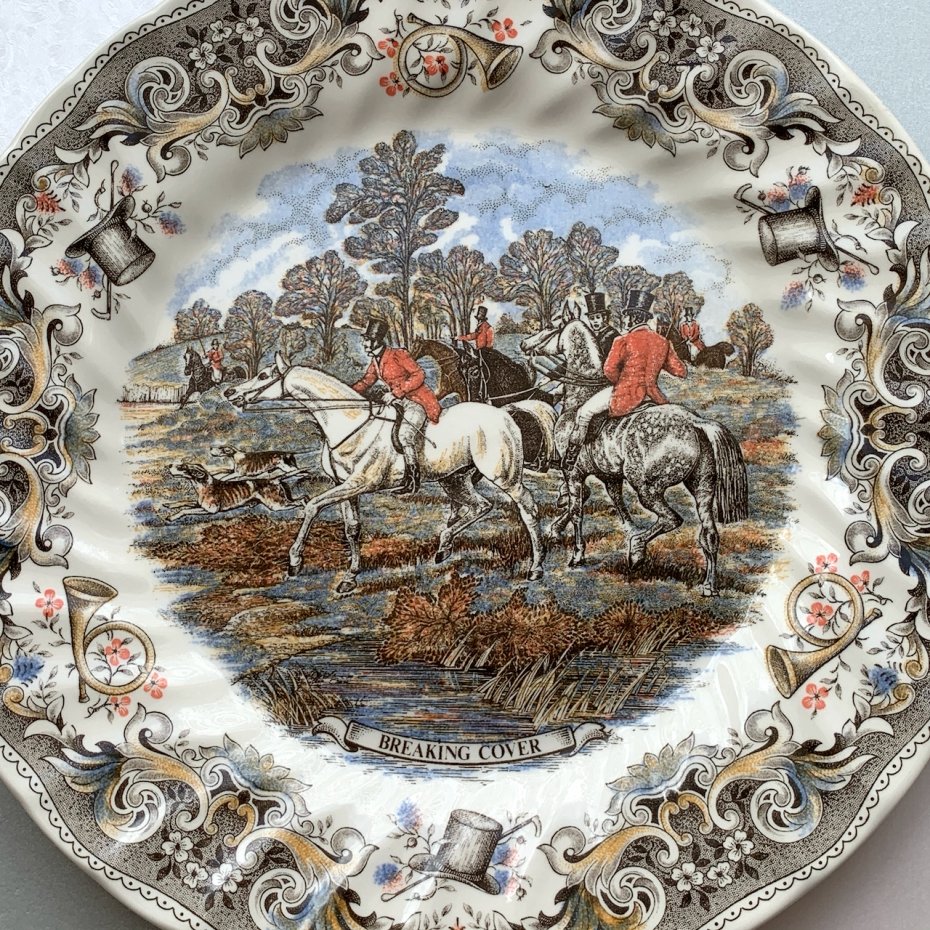 Exclusively Heritage Mint Collectibles ❀ڿڰۣ❀ Herring's Hunt - Breaking Cover. Wyjątkowo efektowana patera ozdobna, odciskana z ręcznie wykonanych miedzianych płyt. Pięknie zdobiona, obrazująca dawne polowania. Wyjątkowo efektowne zdobienia zachowane w kolorystyce sepii z podkolorowaniem. Piękna bogato zdobiona boidura.