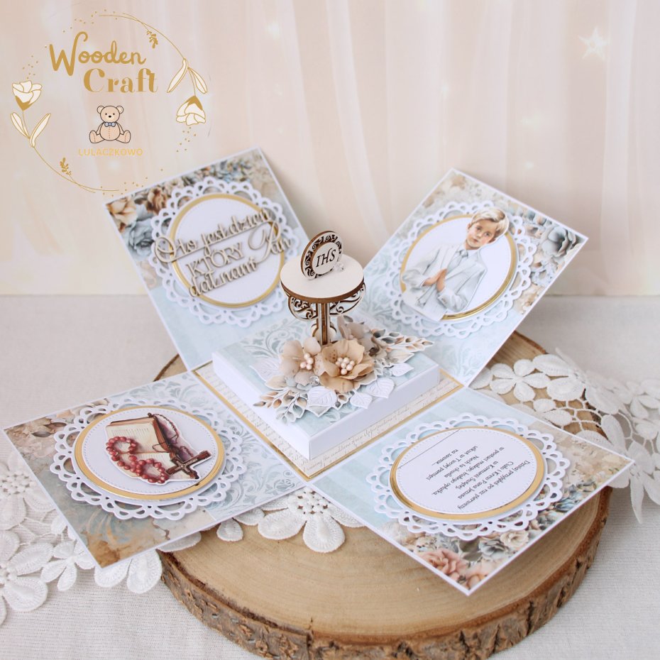 Tagi: #exploding box na komunię, #kartka komunijna, #pamiątka pierwszej komunii, #prezent na komunię świętą