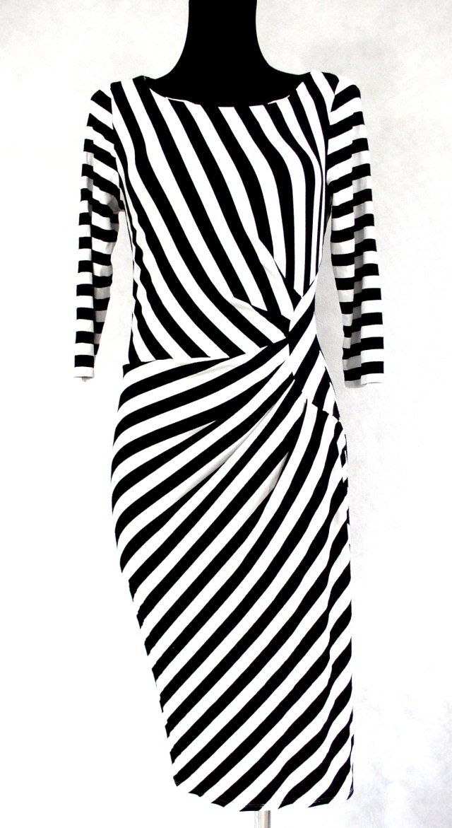 Sukienka firmy F&F.Rozmiar 12,nasz 38-40.Materiał 97% wiskoza+3% elastan.Z przodu w pasie odcięta +marszczona do wstawionego półokręgu.Rękaw długi,wąski.Dekolt okrągły.Stan ogólny dobry+.Długość 103 cm.pod pachami 92 cm.pas 76 cm.zdjęcie zrobione na manekinie rozmiar 38.