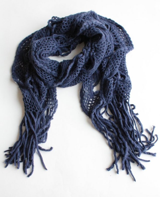 Granatowy szal marki F&F o ażurowej strukturze.