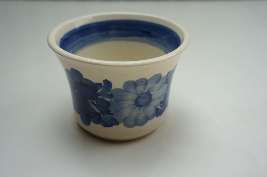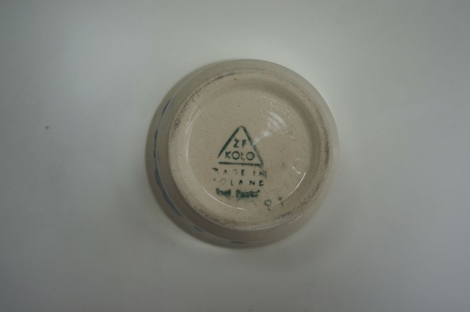 Fajansowy kubek z wytwórni “Koło", ręcznie malowany. Stan bardzo dobry. Nada kuchni sielskiej atmosfery. Postawiony na biurko może posłużyć jako pojemnik na kredki lub jako osłonka na doniczkę. Dwie sztuki.
