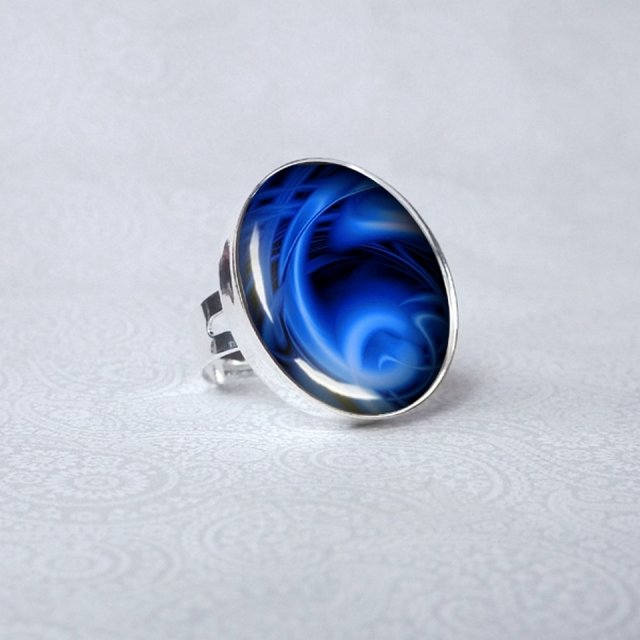 Tagi: #biżuteria z grafiką, #duży pierścionek, #fale, #niebieski pierścionek