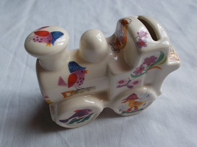 Fantastyczna ceramiczna skarbonka - lokomotywa; sygnowana; Przepięknie zdobiona :)