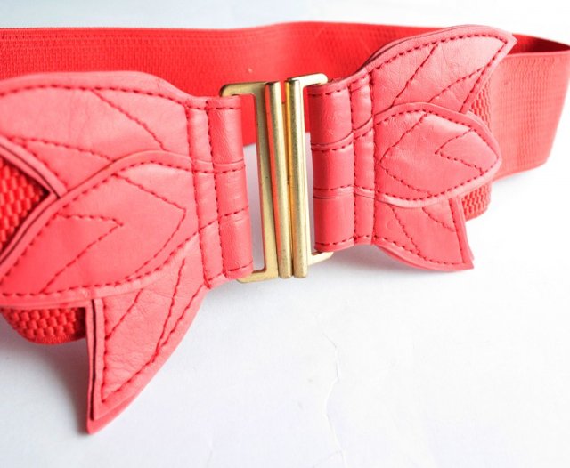 Oryginalny pasek z ciekawie ozdobioną klamrą. Bazą paska jest elastyczna guma, która ładnie podkreśla atuty sylwetki i nie krępuje ruchów tak jak klasyczny skórzany pasek.