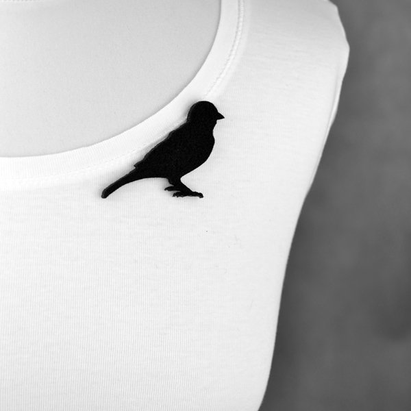 broszka filcowa w kształcie wróbla