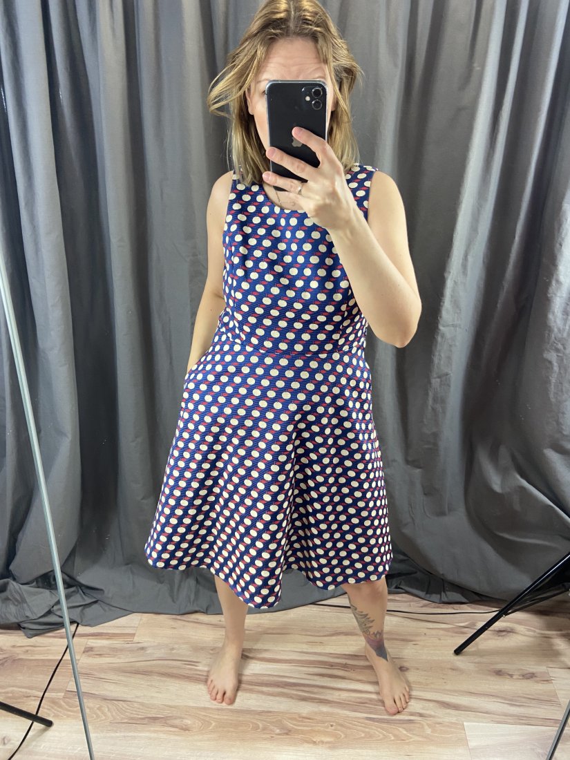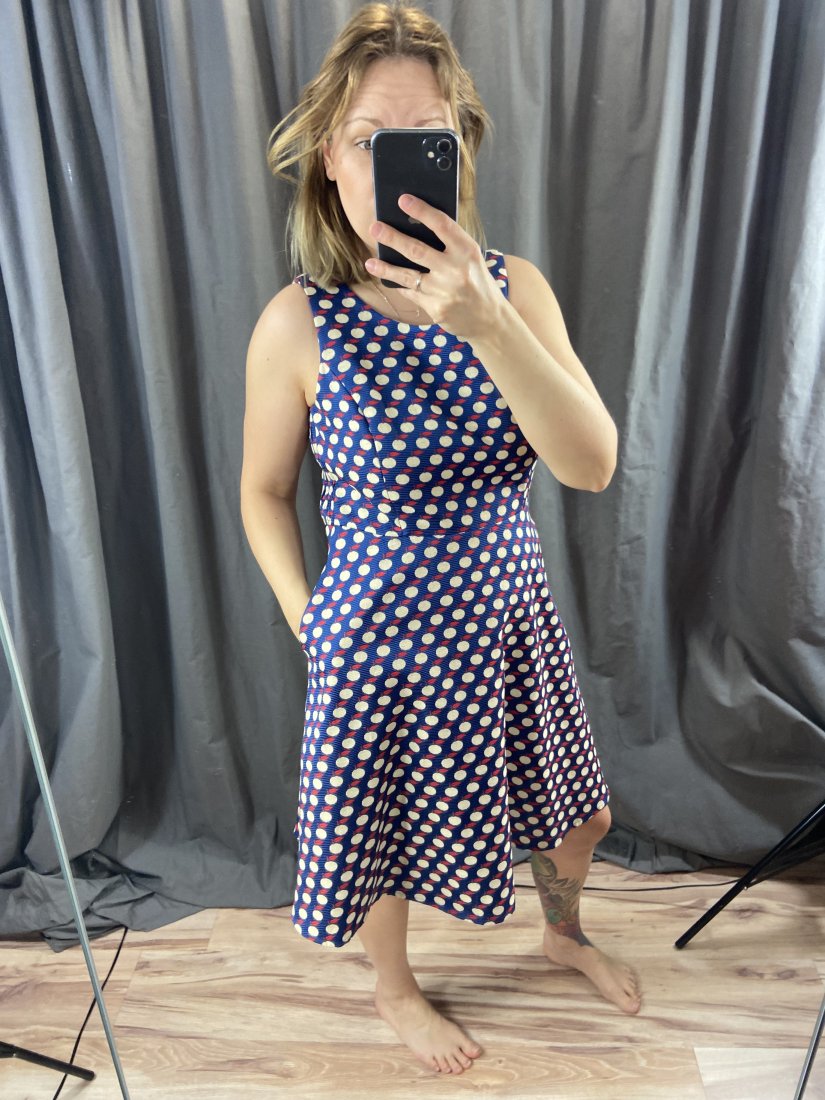 Fever London. Sukienka w jabłuszka. Z kieszeniami. 71% poliester, 29% rayon. Podszewka bawełniana.