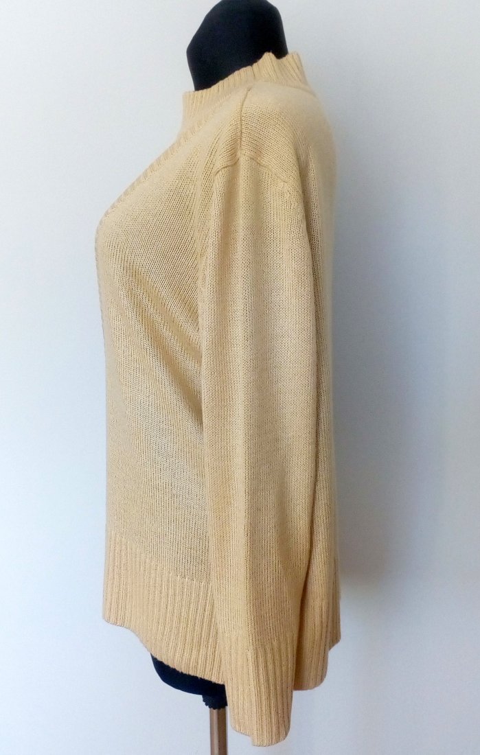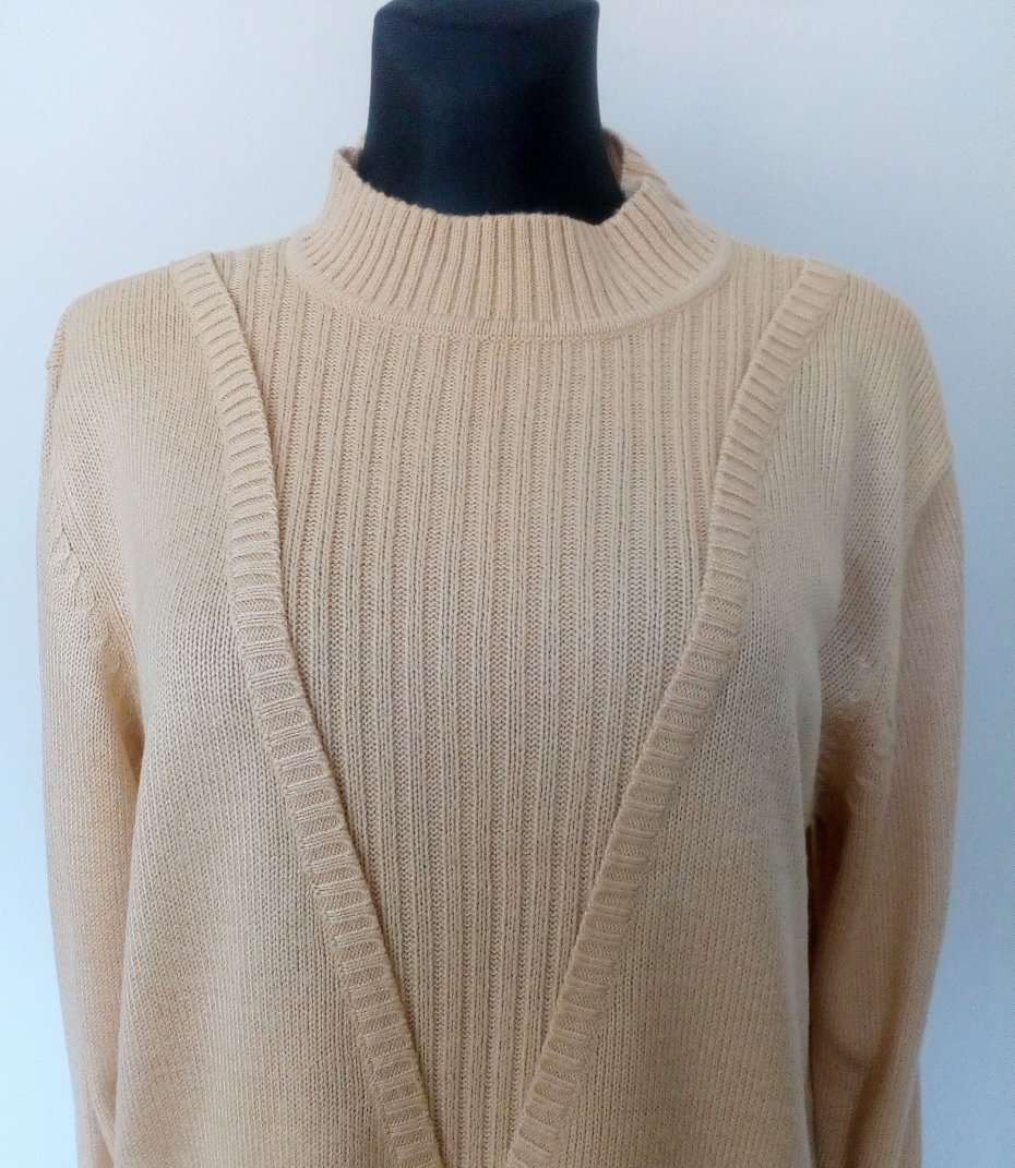 Ładny sweter w żółtym/musztardowym kolorze, półgolf, z wysokimi ściągaczami u dołu i przy rękawach