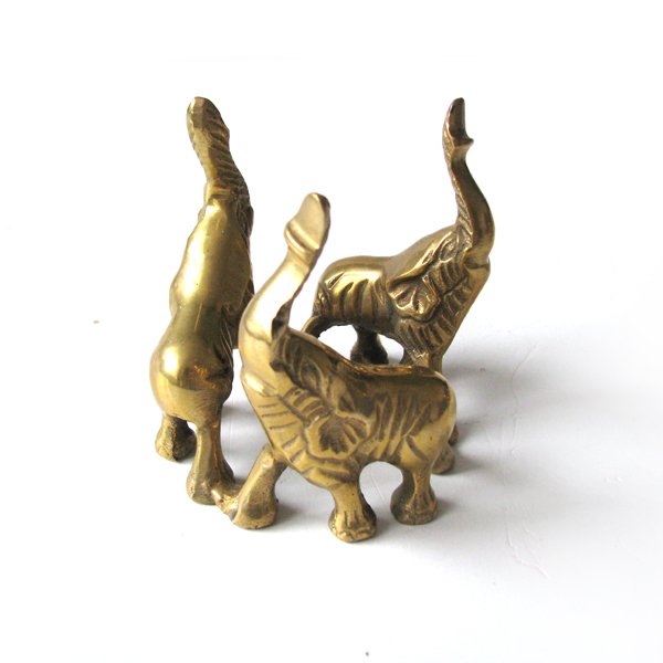 Piękna figurka przedstawiająca trzy słonie. Wykonana z mosiądzu, okrągła, stanowi piękny element dekoracyjny we wnętrzu. Idealna na prezent, na szczęście dla bliskiej osoby.