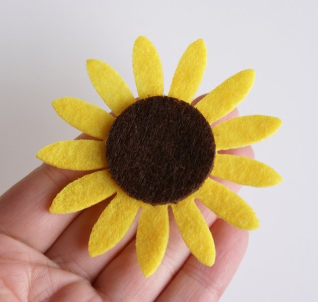 Wykonana ręcznie niepowtarzalna broszka z filcu z kwiatem słonecznika.