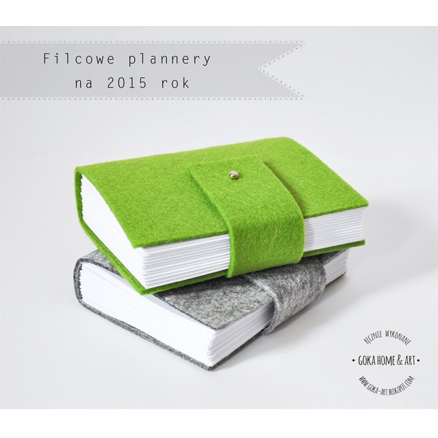 W środku znajdziecie plan miesięczny, notatnik oraz karty dzienne na cały rok. Cały organizer ręcznie szyty z filcową okładką,zamykany.