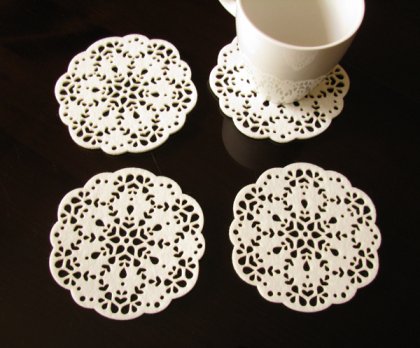 Zestaw czterech pięknych podkładek zainspirowanych sztuką ludową. Zostały wycięte laserowo w białym filcu grubości 4mm, pięknie prezentują się na stole zarówno w klasycznych, jak też nowoczesnych wnętrzach. Projekt autorski,