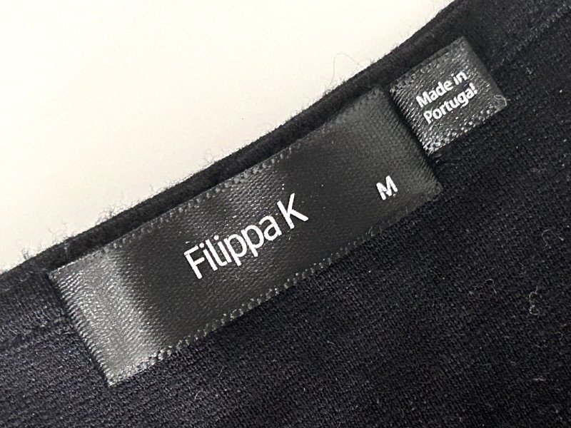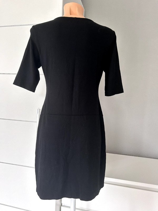 Sukienka firmy premium Filippa K w kruczo czarnym kolorze, rozmiar M 38. Dół odcinany z naszytymi kieszeniami - w stylu retro, vintage. Klasyczna, długość do kolana. Wykonana z wiskozy, przewiewna, z dodatkiem elastanu, a więc rozciągliwa. Szafa kapsułowa, old money style. Polecam
