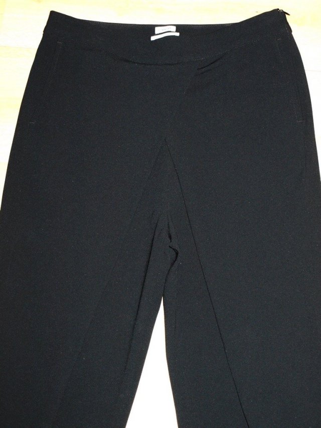 eleganckie spodnie, ekskluzywnej marki, w kolorze czarnym. ciekawy fason z zakładaną górą. Materiał 82% acetat 18% poliester. materiał lejący, zamek z boku, są bez podszewki. Rozmiar z metki M, raczej na osobę bez wystającego brzuszka, żeby fałdy nie rozchodziły się. przy tej szer. pasa biodra są stosunkowo wąskie. myślę, że przy wiekszych biodrach, nie będą się dobrze układać. Stan bardzo dobry. Podaję wymiary mierzone na płasko;