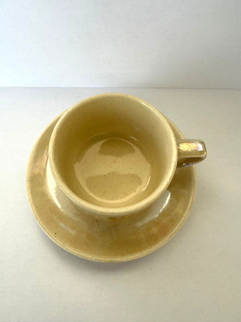 Filiżanka do mokki, wraz z podstawkiem, pochodząca z rumuńskiej wytwórni z lat 70–80 XX wieku. Wykonana ze szkliwionej ceramiki, utrzymana w charakterystycznym stylu marmurkowej malatury, poszukiwanej wśród wyrobów użytkowych z epoki socjalistycznej.
