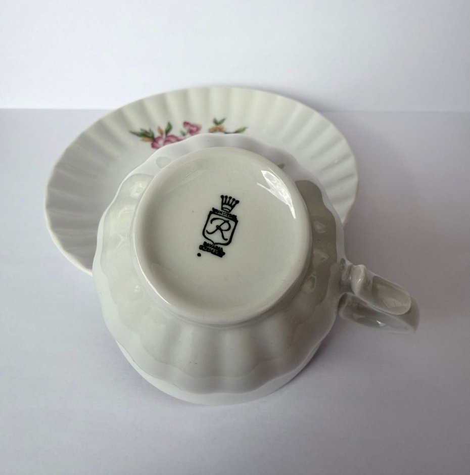 Śliczna, elegancka filiżanka wyprodukowana przez Retsch KG, Wunsiedel (Western Germany) w latach 1950–1970 r. To klasyczny przykład bawarskiej delikatnej porcelany powojennej, cenionej za dekoracyjność, jakość wykonania i charakterystyczne sygnatury eksportowe.