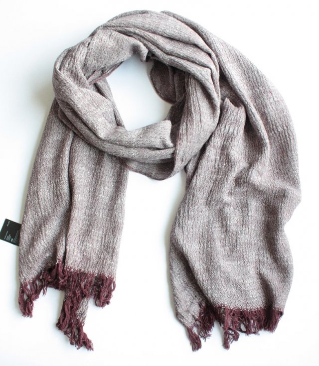 Miękki, duży szal o melanżowej teksturze. Wykończenie pięknymi frędzlami.