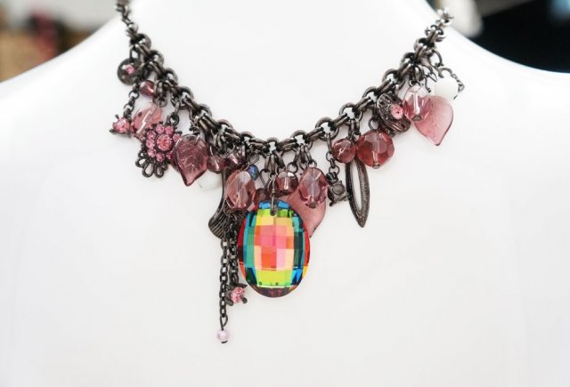 Szalenie efektowny piękny naszyjnik wykonany z wielu uroczych zawieszek