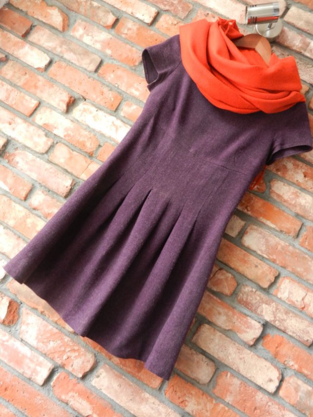 Przepiękna, ciepła sukienka w stylu lat 60. Góra dopasowana, dół rozkloszowany.
