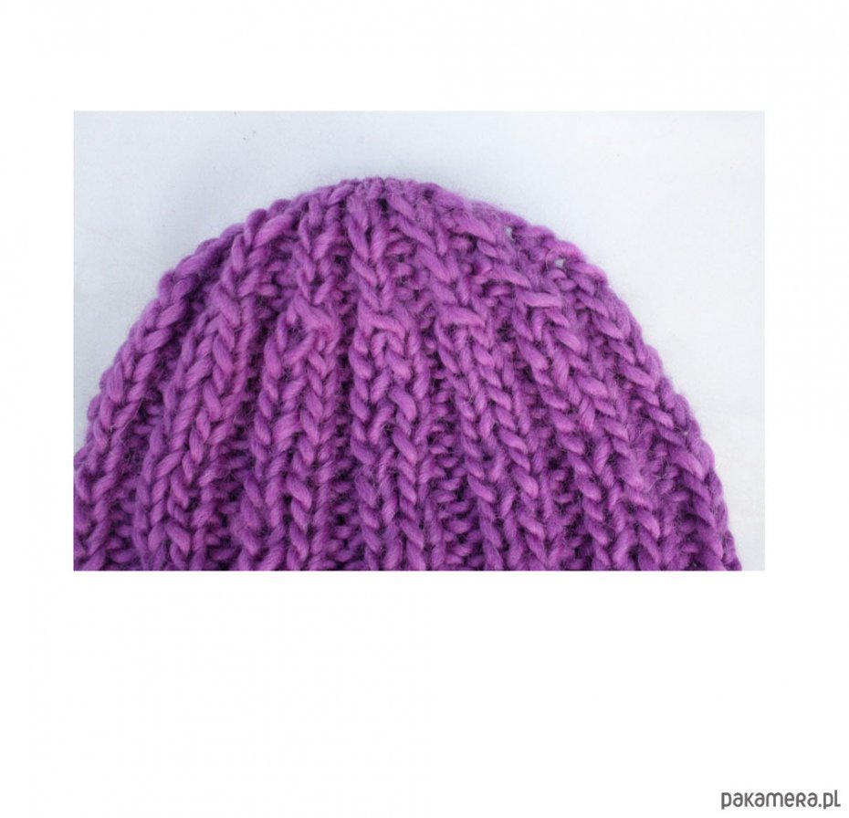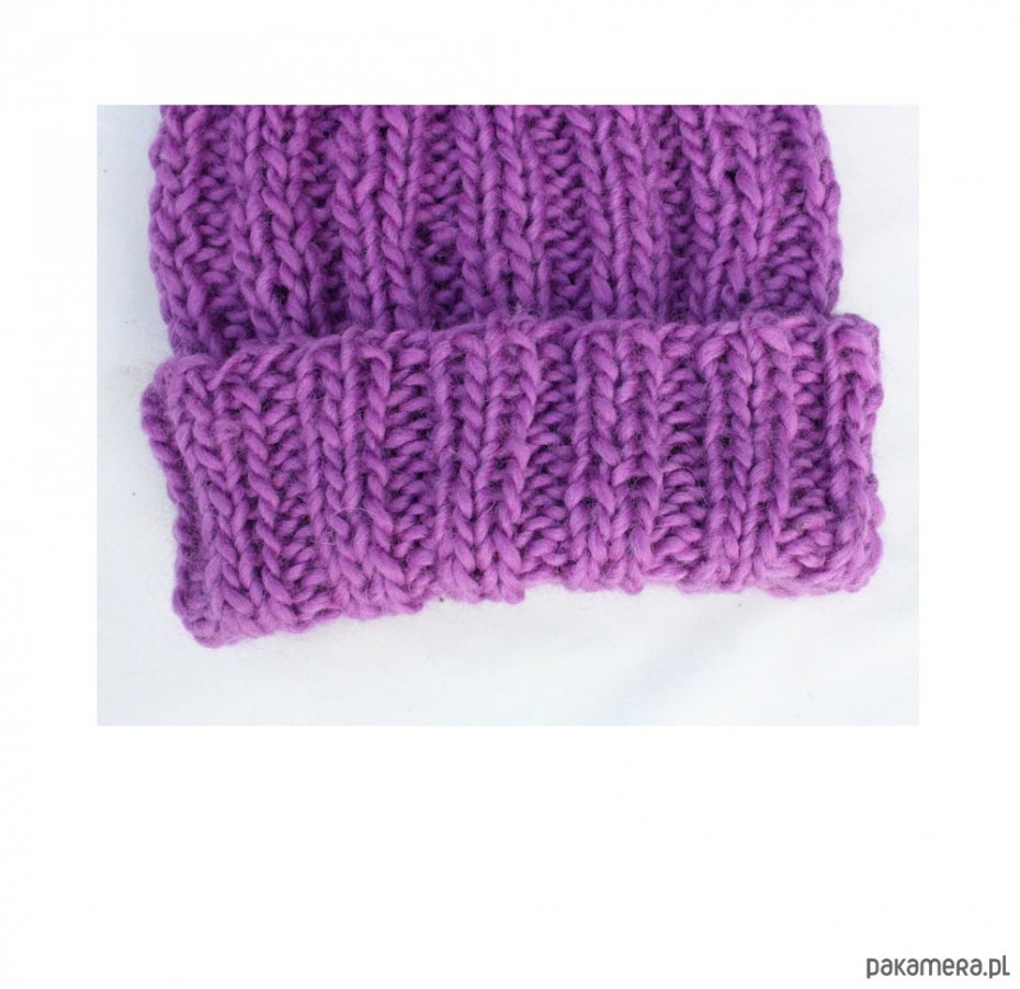 Ręcznie wykonana, gruba, mięsista czapka w kolorze fioletowym.