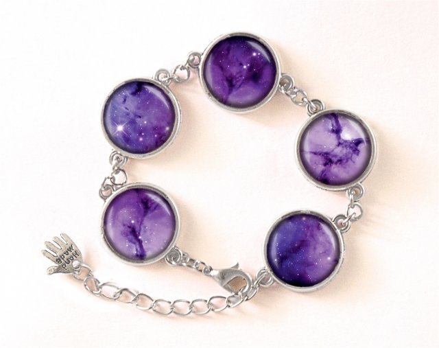 Ręcznie robiona bransoletka z wysokiej jakości grafiką pokrytą wypukłym, powiększającym szkiełkiem.