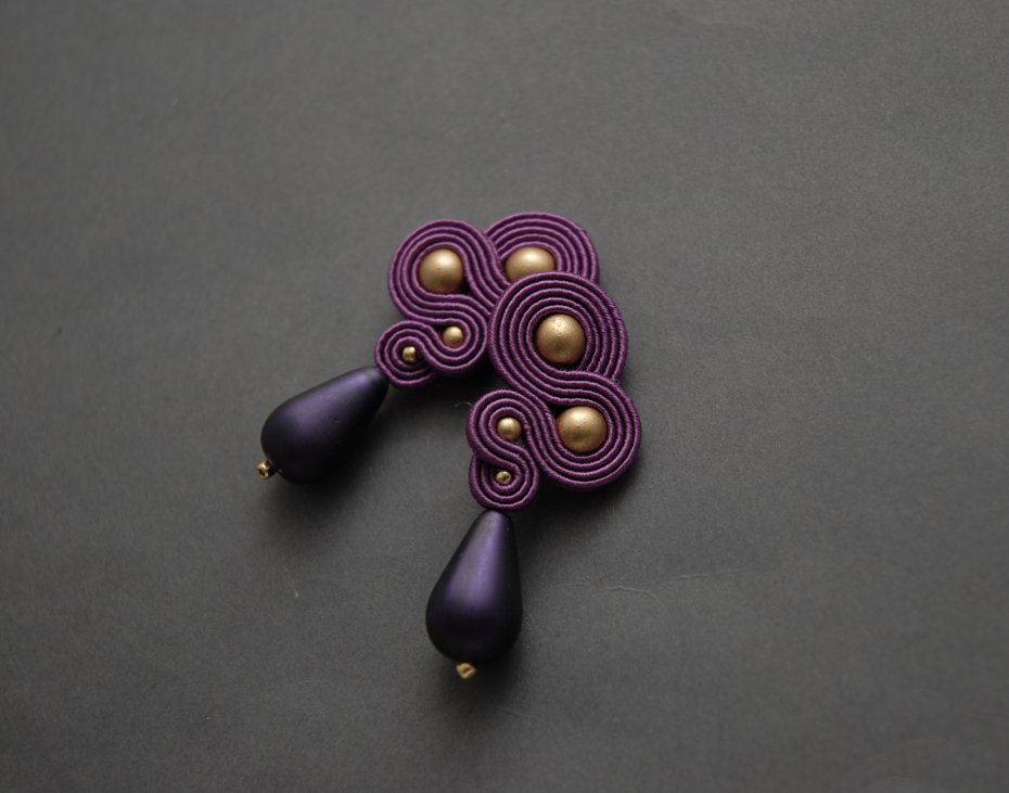 oferuję kolczyki zrobione haftem sutasz, ozdobione koralikami