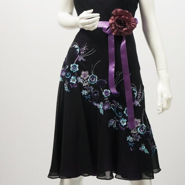 Z dołączoną fioletową kokardką dla podkreślenia talii