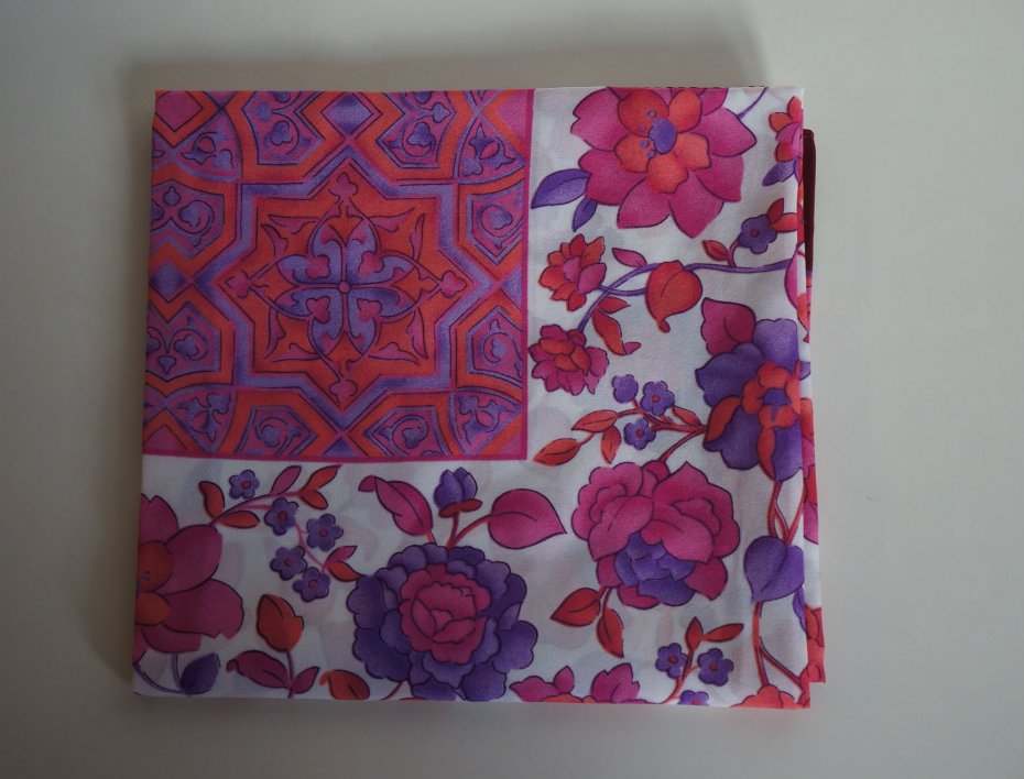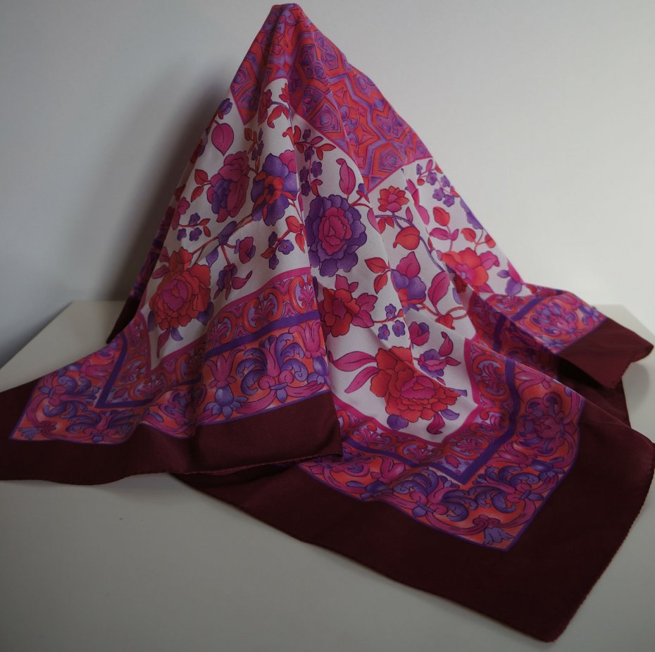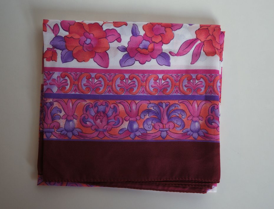 Ładna, kwiecista chusta. Bardzo kobieca. 100% poliester. Stan bardzo dobry.