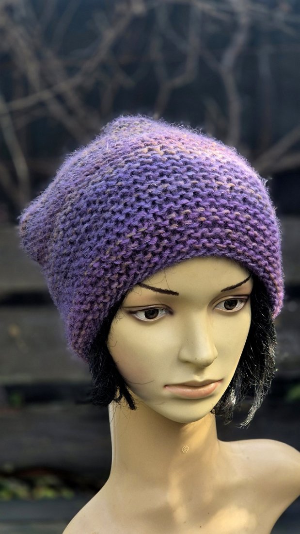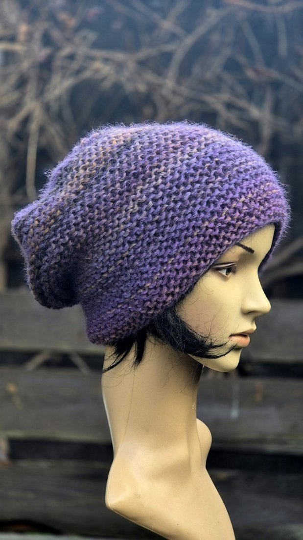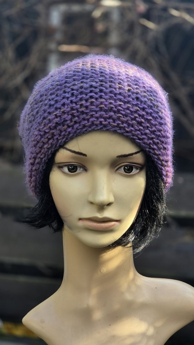 Ciepła, miękka czapka wykonana ręcznie na drutach. Połączyłam cieniutką nitkę 70% kid moher/30% jedwab z miękką włóczką 53% wełna merino, 47% akryl. Czapka jest bezszwowa.