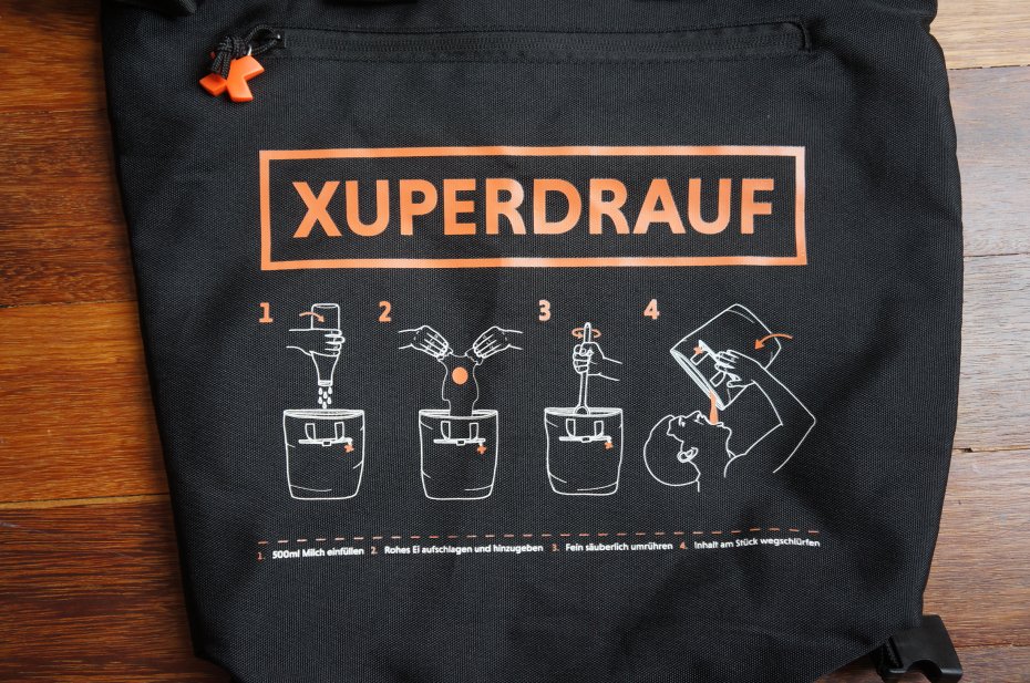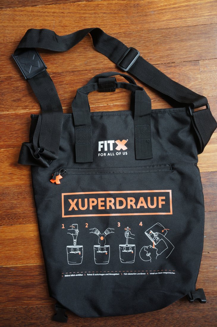 FIT X XUPERDRAUF - torba turystyczna/sportowa. Na ramię, wielofunkcyjna, nieprzemakalna. Tkanina impregnowana. Posiada jedną, dużą przegrodę zapinaną na suwak. W środku i na zewnątrz po jednej kieszonce zapinanej również na suwak. Krótkie dwa uchwyty zapinane na rzep. Długi, szeroki, regulowany pas na ramię. Ogólnie stan bardzo dobry.