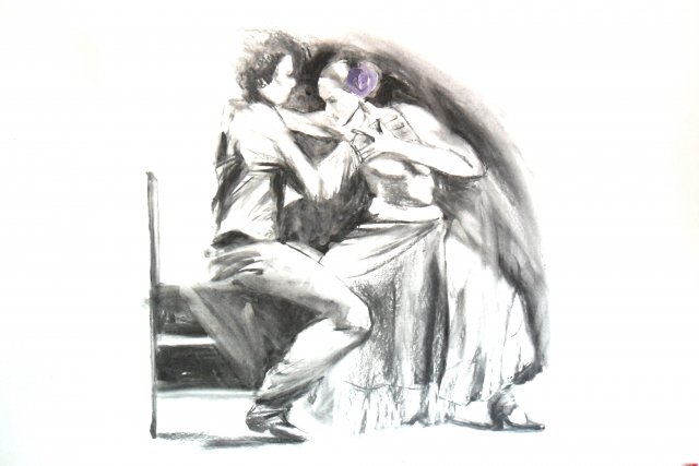 Rysunek węglem i akrylem,100 na 70cm.Sam rysunek jest umieszczony centralnie i ma wielkośc ok.50cm.Wysyłka prac w tubie.