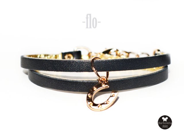 Minimalistyczna bransoletka z kolekcji FLO, wykonana z wysokiej jakości skóry naturalnej w odcieniu klasycznej czerni. Elementy metalowe w kolorze złotym. Zapinana na metalowy karabińczyk w kolorze złotym. Elementy metalowe wysokiej jakości - nie ciemnieją. Wewnątrz wykończona złotą skórą naturalną. Do dwukrotnego owinięcia wokół nadgarstka. Obwód regulowany 16-17 cm Lekka i wygodna. Ładnie układa się na nadgarstku. Ładnie układa się na nadgarstku. Pakowana w eko pudełeczko.