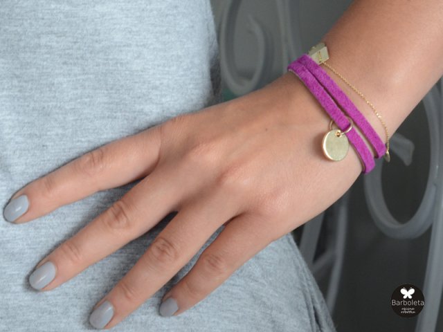 Minimalistyczna bransoletka z kolekcji FLO, wykonana z wysokiej jakości skóry włoskiej, naturalnej zamszowej w odcieniu energetycznej fuksji.. Elementy metalowe w kolorze złotym. Zapinana na metalowy karabińczyk w kolorze złotym. Elementy metalowe wysokiej jakości - nie ciemnieją. Wewnątrz wykończona złotą skórą naturalną. Do dwukrotnego owinięcia wokół nadgarstka. Obwód regulowany ok 16-17 cm Lekka i wygodna. Ładnie układa się na nadgarstku. W zależności od ustawień monitora, kolory w rzeczywistości, mogą nieznacznie różnić się od przedstawionych na zdjęciu. © wzór chroniony prawem autorskim Opatrzona metką projektanta.