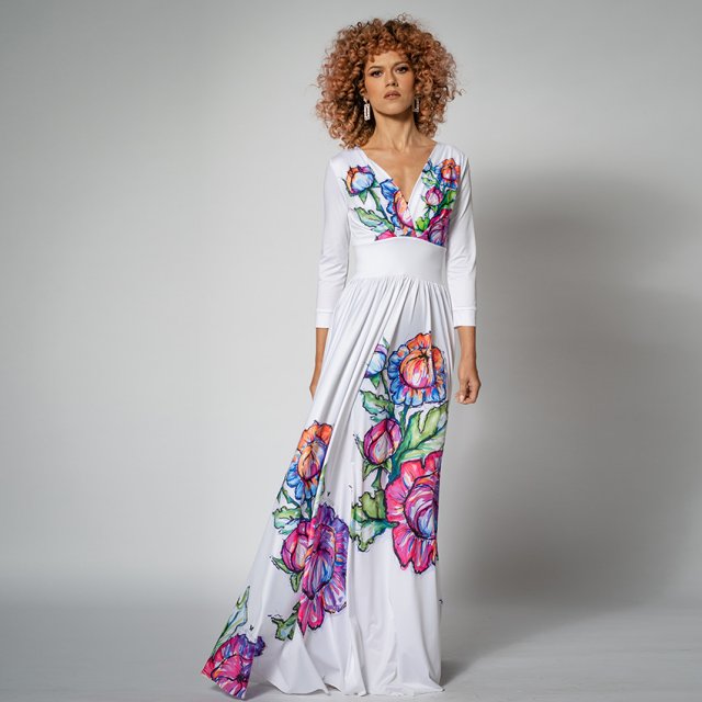 Oryginalna suknia z nadrukiem inspirowanym malarstwem zalipiańskim.