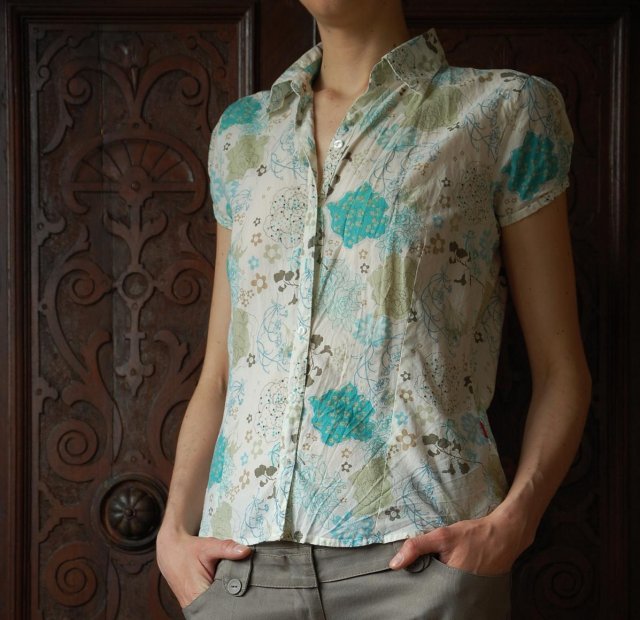 Tagi: #bluzka koszulowa, #khaki, #kwiaty, #turkusowy