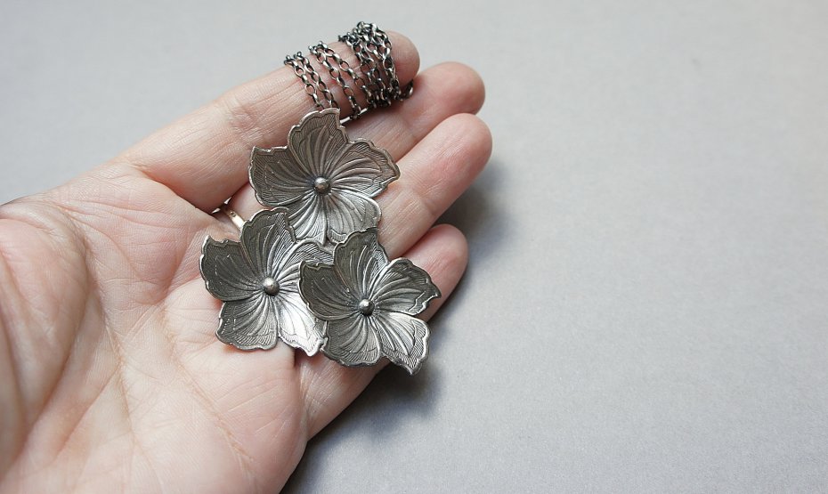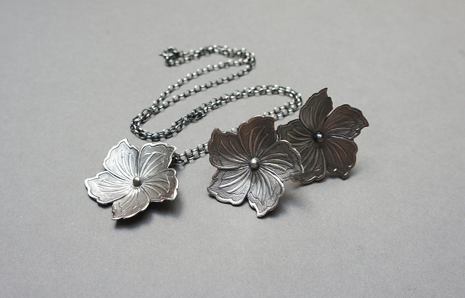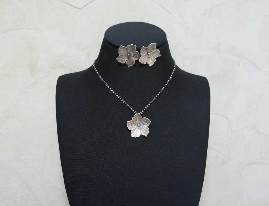 Kolczyki wykonane ze srebra [pr. 925] w połączeniu z dużymi srebrnymi kwiatami. Wielkość kwiatka [30mm]. Srebro oksydowane i przecierane. Biżuteria ozdobnie zapakowana. Do kompletu można dopasować naszyjnik -dostępny w naszej galerii.