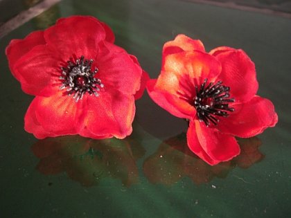 Klipsy. Maki. Czerwone. Ze szklanym czerwonym koralikiem w środku. Leciutkie. Radosne. Na każdą porę roku. Średnica kwiatu 5 cm.