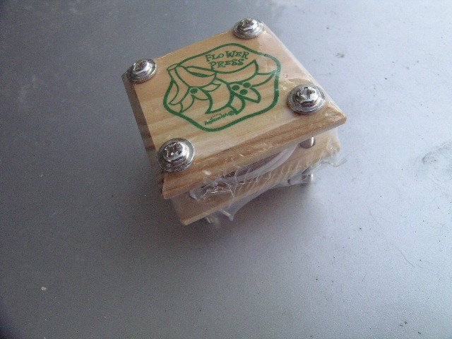 Niewielka rzecz,ale jakże praktyczna :) Praska do suszenia kwiatów przy robieniu zielnika wielce użyteczna . Drewno i metalowe śrubki z gwintem do skręcania w miarę suszenia. Papierkowe bibułki wewnątrz. Nowa rzecz w opakowaniu. Made in England.