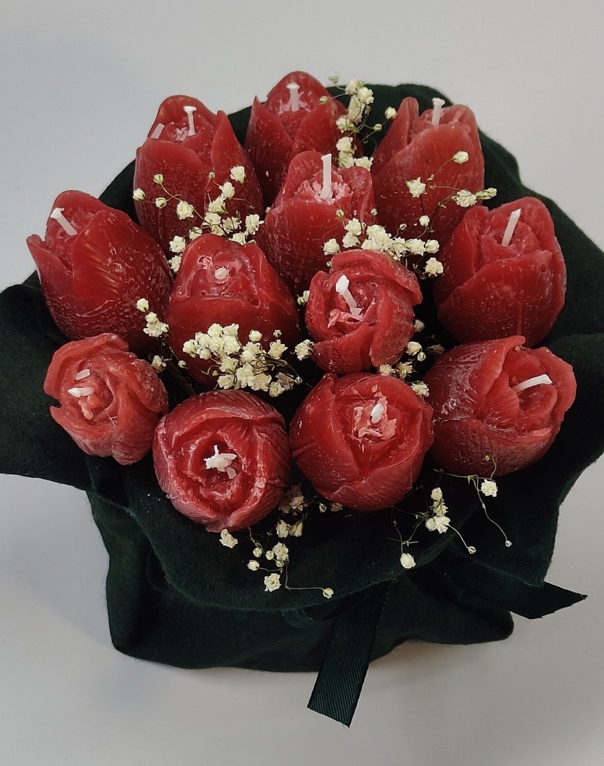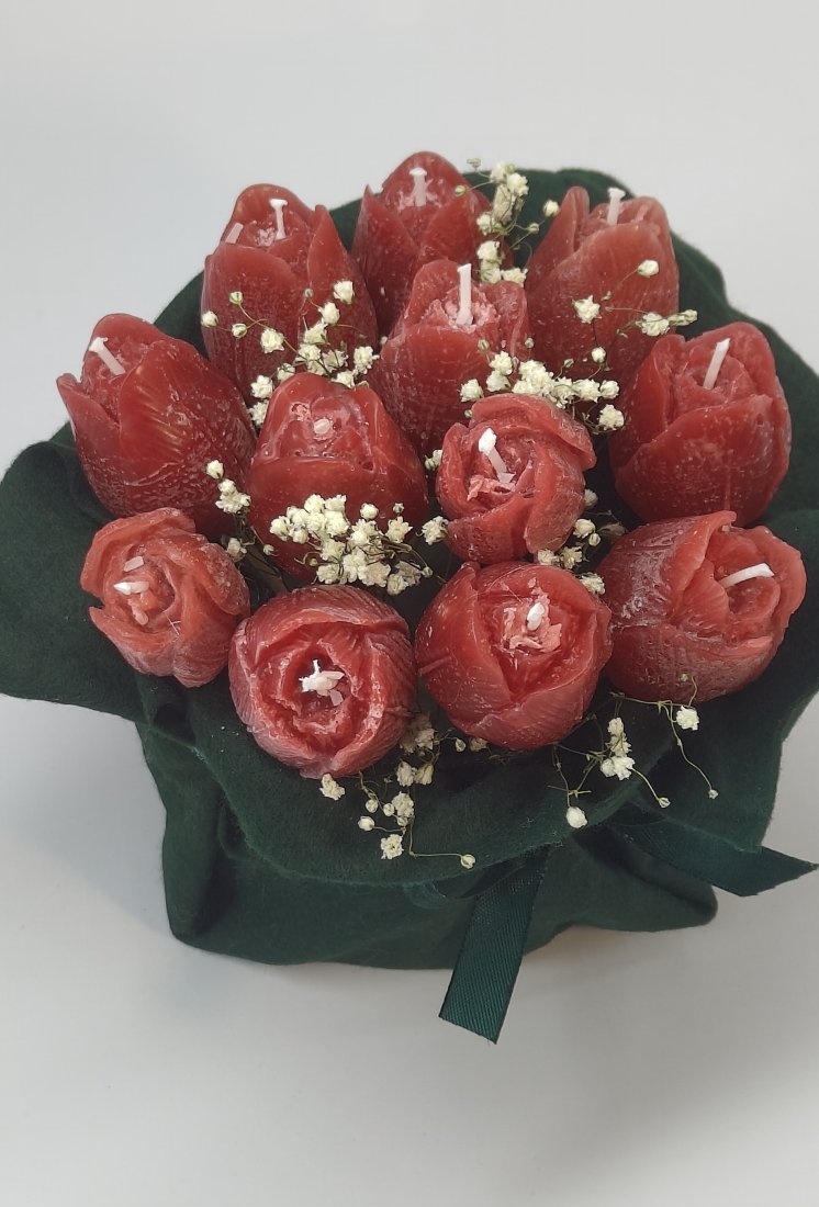 Ręcznie robiony ozdobny bukiet ze świec. Idealny do dekoracji Twojego wnętrza. Świetny, niepowtarzalny, prezent dla najbliższych.