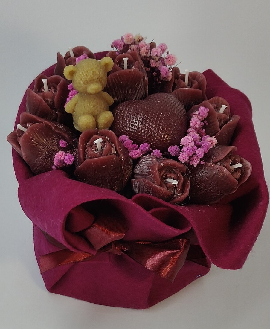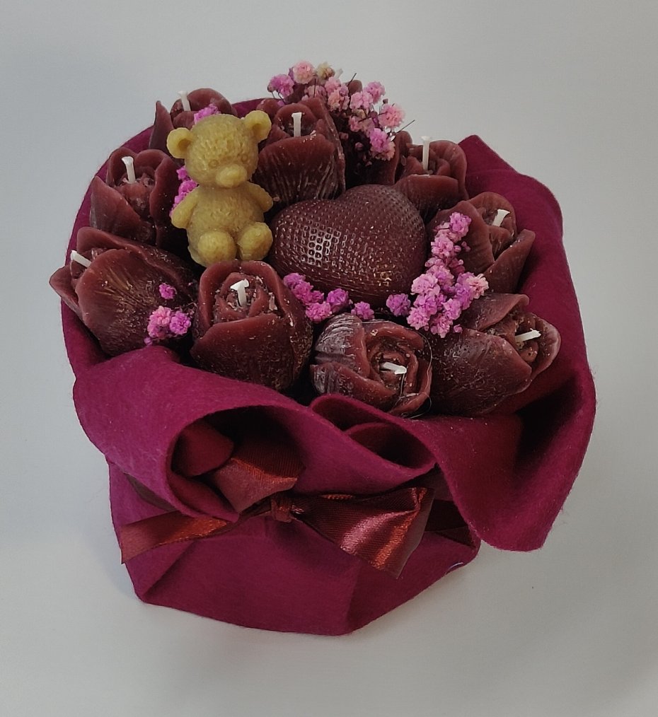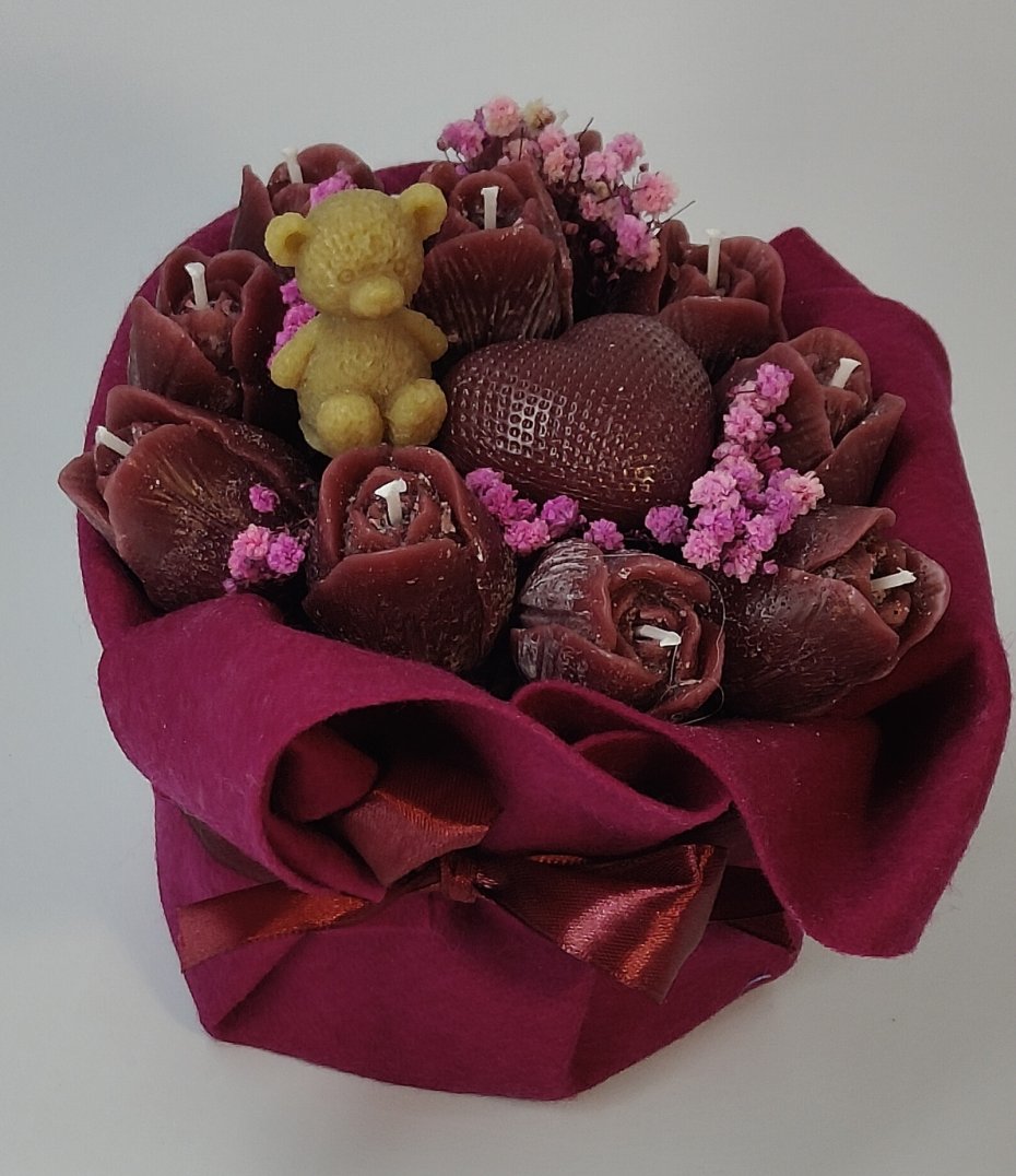 Ręcznie robiony ozdobny bukiet ze świec. Idealny do dekoracji Twojego wnętrza. Świetny, niepowtarzalny, prezent dla najbliższych.