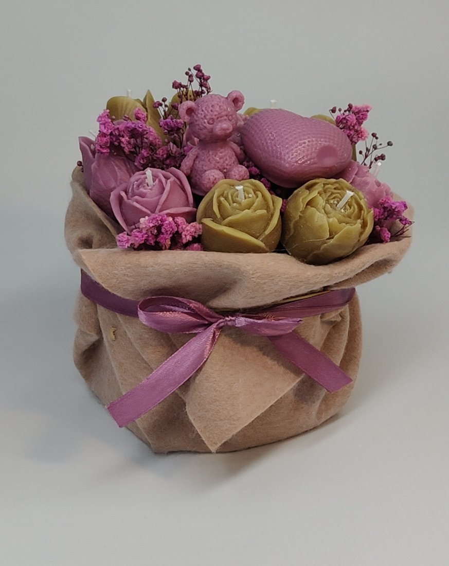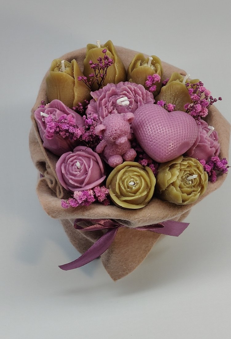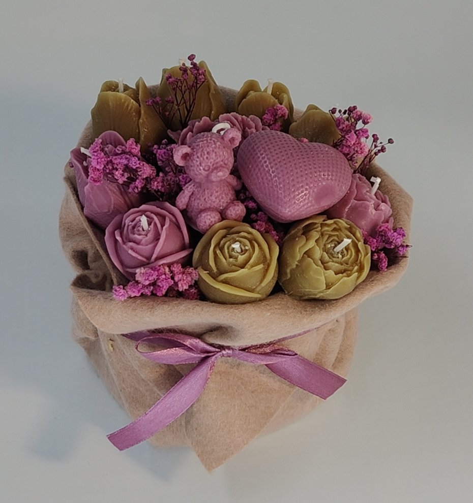 Ręcznie robiony ozdobny bukiet ze świec. Idealny do dekoracji Twojego wnętrza. Świetny, niepowtarzalny, prezent dla najbliższych.