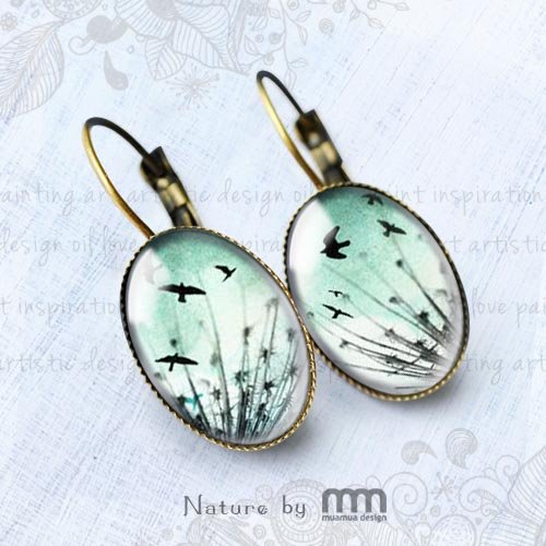 Kolczyki Flying to bardzo kobiece i malutkie dzieła sztuki, które łączą nowoczesność z odrobiną antycznego powiewu. Obrazki pod szkiełkiem to obraz mojego autorstwa.
