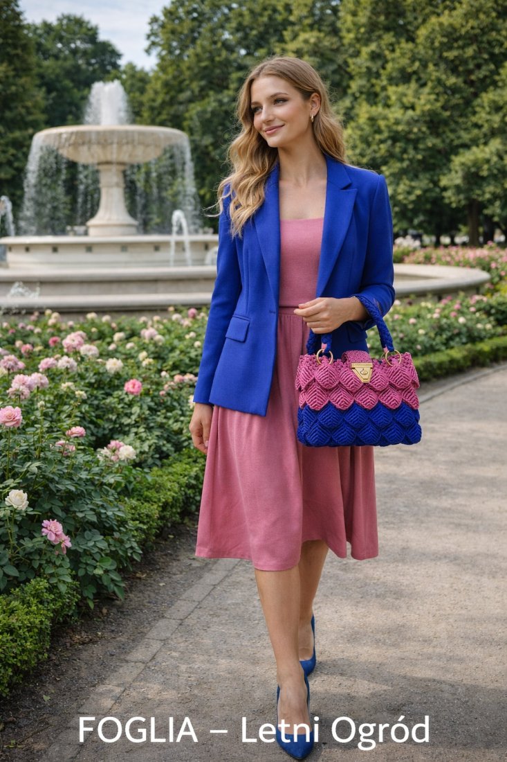 Model FOGLIA - Letni Ogród to torebka inspirowana naturą i letnimi kolorami ogrodu. Charakterystyczny wzór listków tworzy trójwymiarową strukturę , która nadaje torebce wyjątkowy, elegancki wygląd. Połączenie brudnego różu i głębokiego chabru przywołuje skojarzenia z kwiatami rozkwitającymi w pełnym słońcu. To torebka , która przyciąga uwagę a jednocześnie pozostaje subtelnym dodatkiem do wielu stylizacji. Każda torebka powstaje ręcznie w mojej pracowni ,dlatego jest wyjątkowa i niepowtarzalna. Torebka doskonale sprawdzi się zarówno na co dzień , jak i na wyjątkowe okazje , jako elegancki , ale oryginalny element stylizacji.