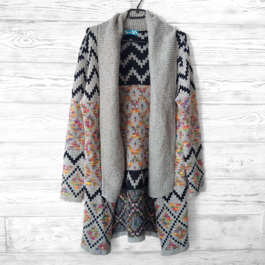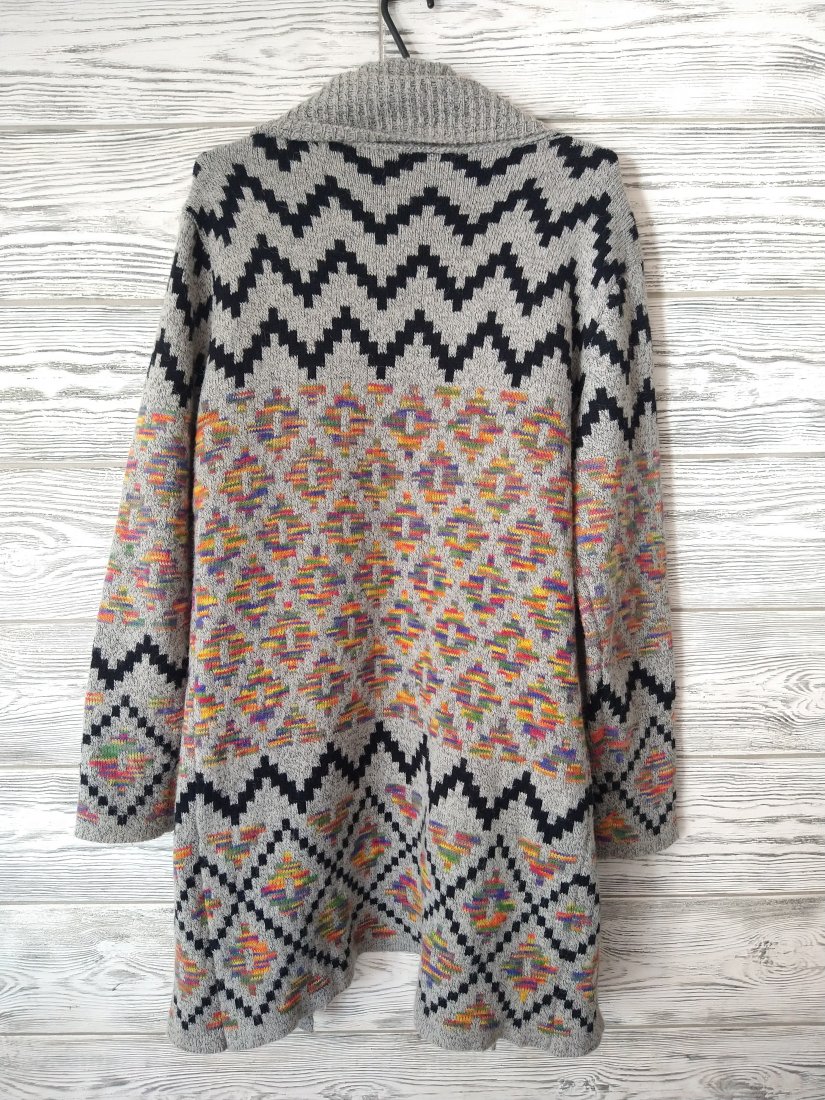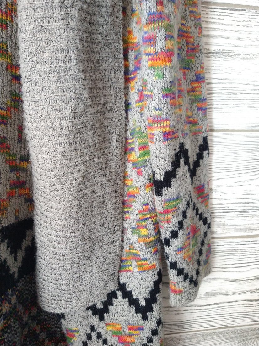 Włoski mięciutki sweter narzutka w piękny kolorowy wzór.