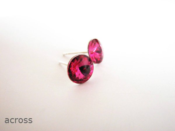 Delikatne sztyfty na bazie srebra oraz 8mm kryształków swarovskiego w kolorze fuksji.