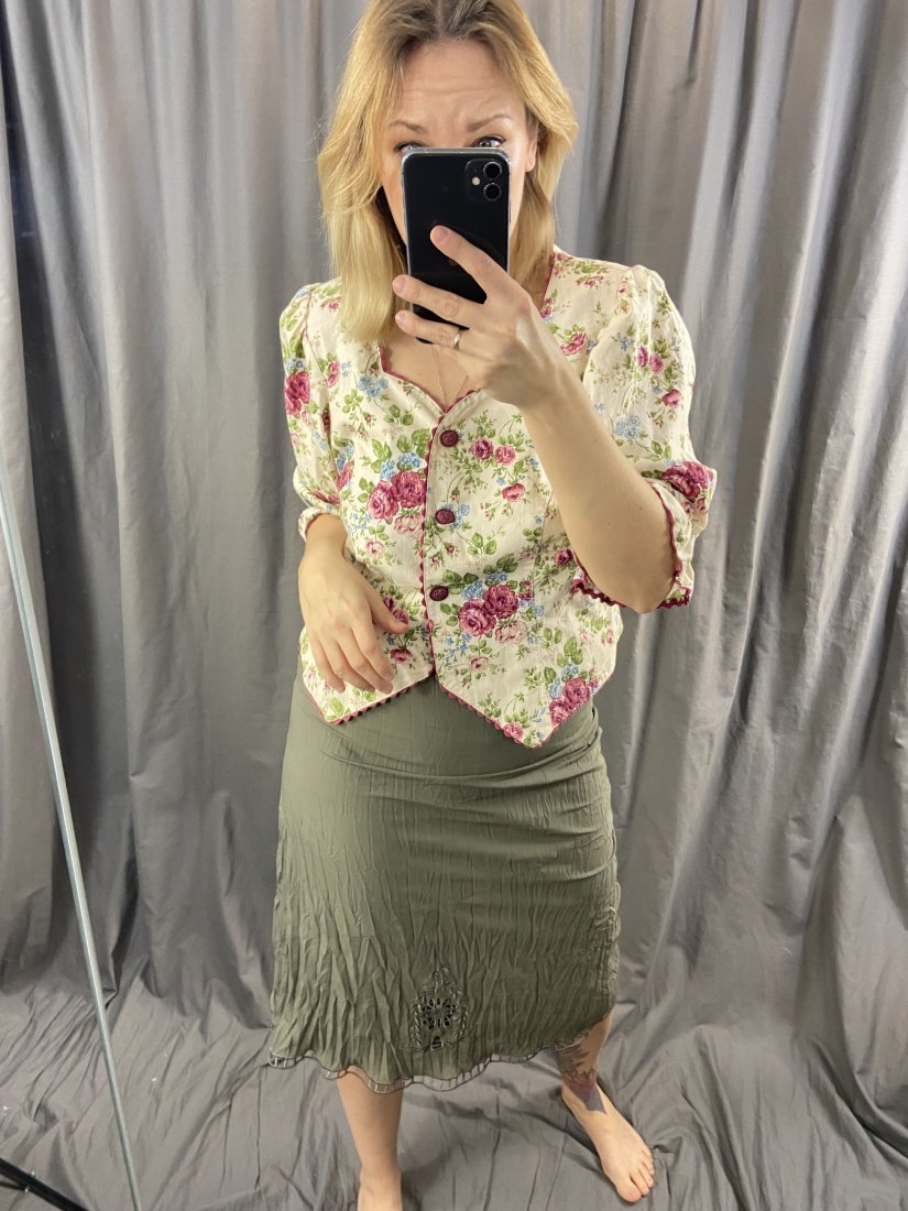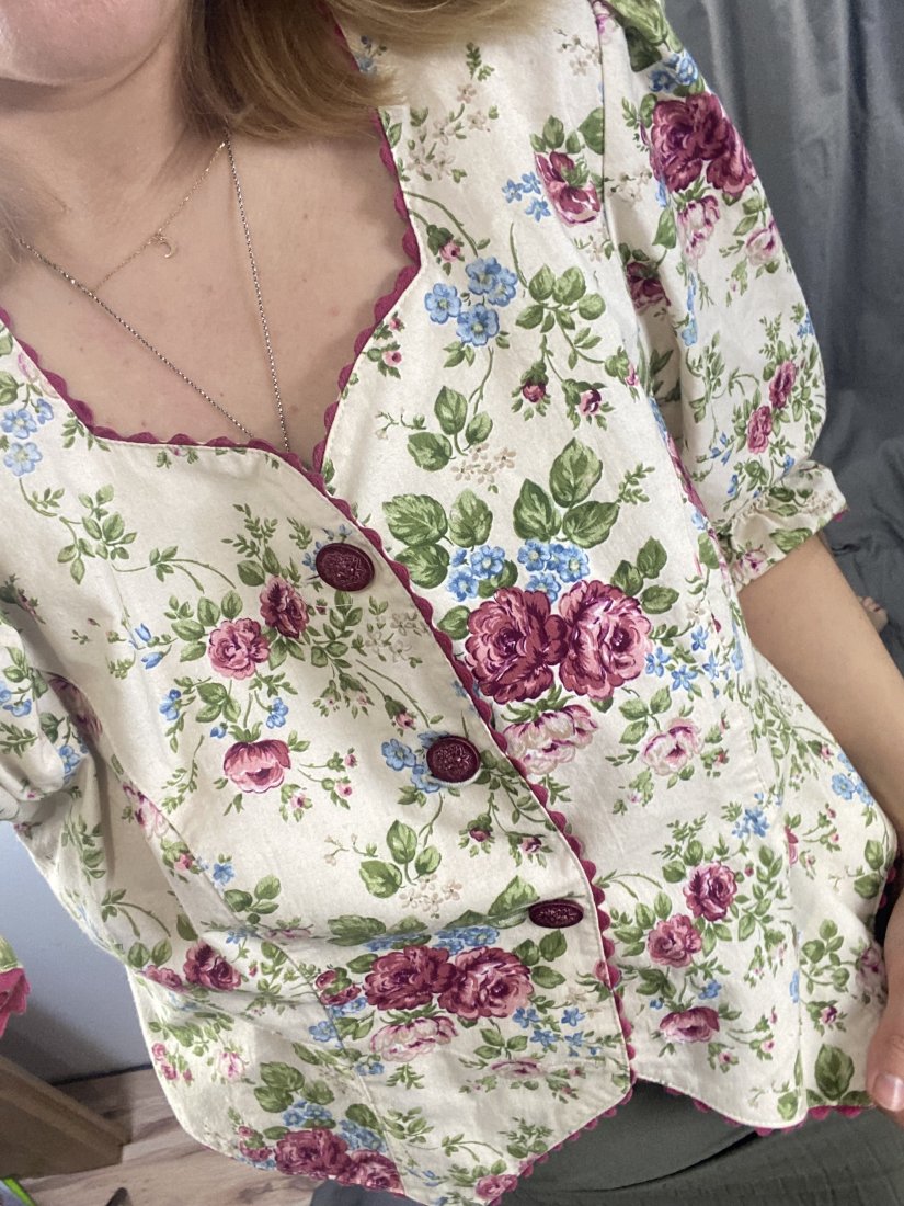 Bawełniana folkowa bluzka/żakiet na guziki. Z delikatnymi poduszkami, i pięknymi bufkowymi rękawami.