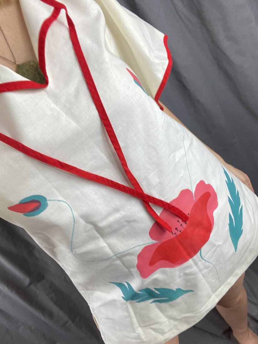 Przepiękna bawełniana, ręcznie malowana tunika artystyczna. Płócienna.