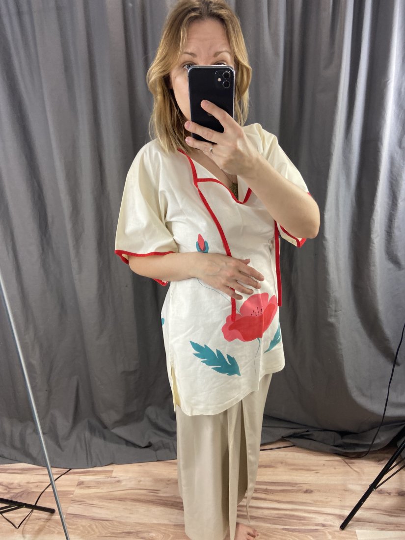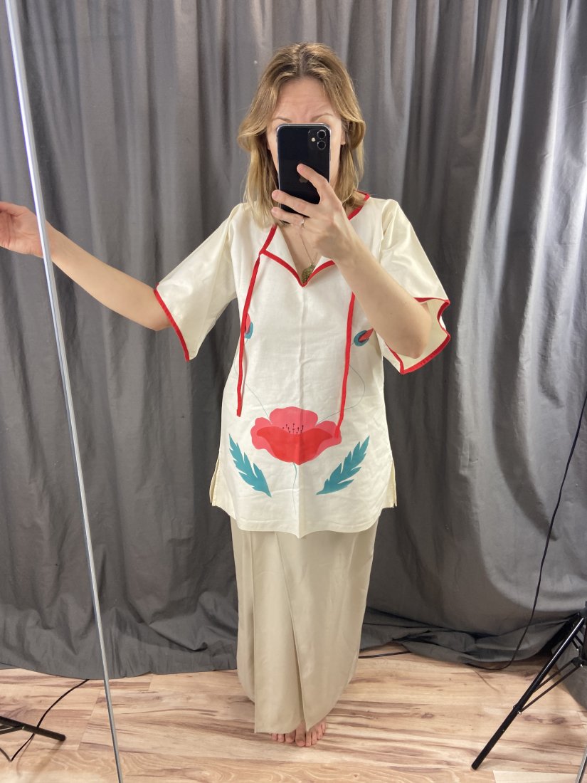 Przepiękna bawełniana, ręcznie malowana tunika artystyczna. Płócienna.