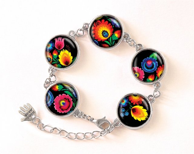 Ręcznie robiona bransoletka z wysokiej jakości grafiką pokrytą wypukłym, powiększającym szkiełkiem.