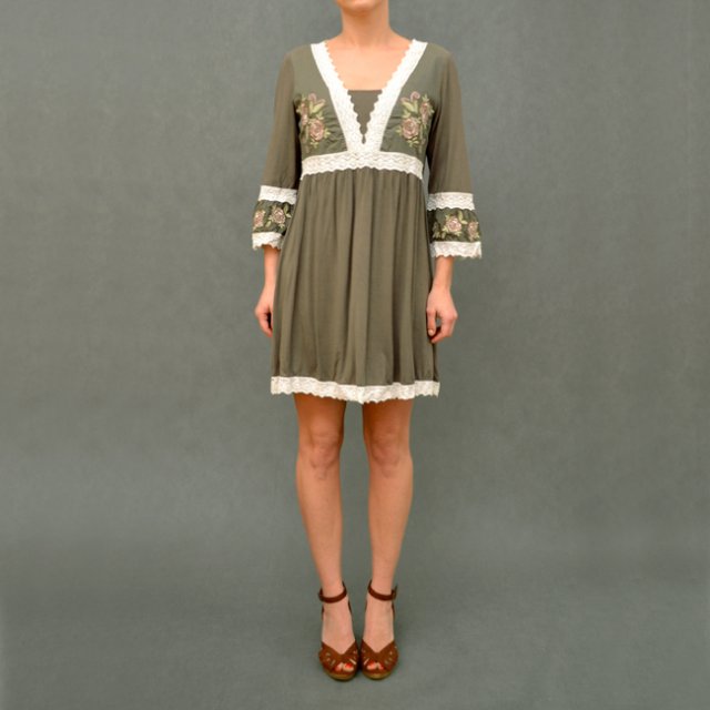 Tuniczka w zieleni khaki z dodatkiem koronek i kwiatów.